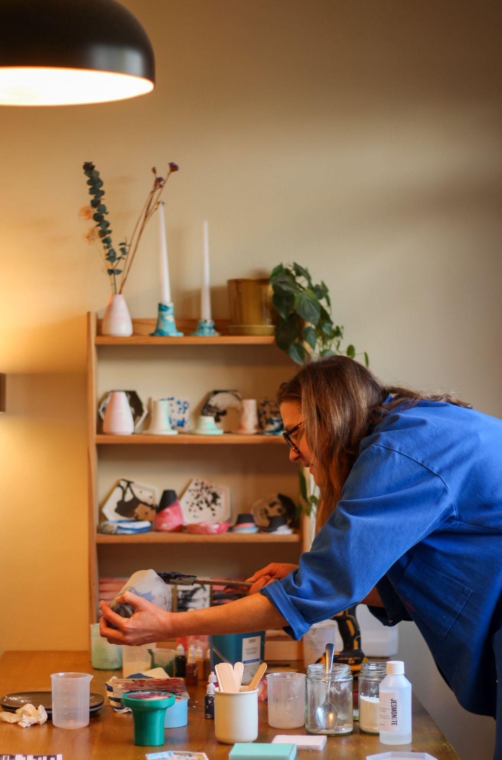 I would love to show you how to make your own homewares and artwork using Jesmonite. See below for upcoming courses and information about private events.