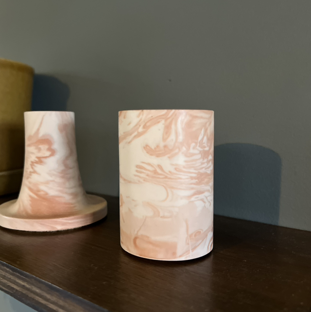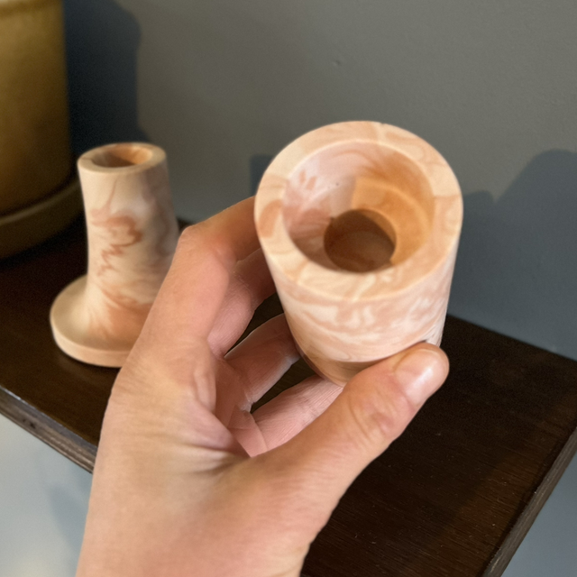 Tall candlesticks. The column one can be used for a tea light or a dinner candle.
