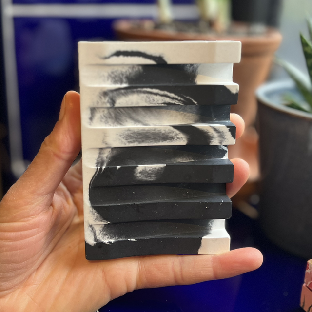 Soap dish - grooved - black and white