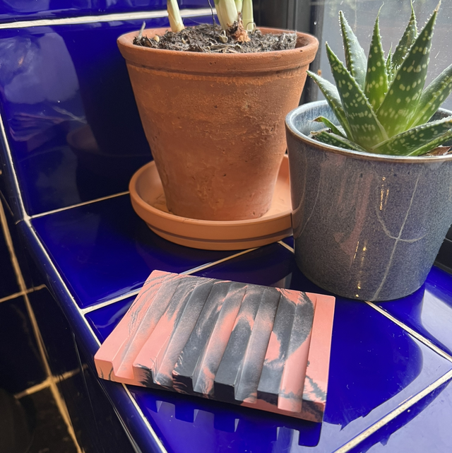 Soap dish - grooved - pink and black