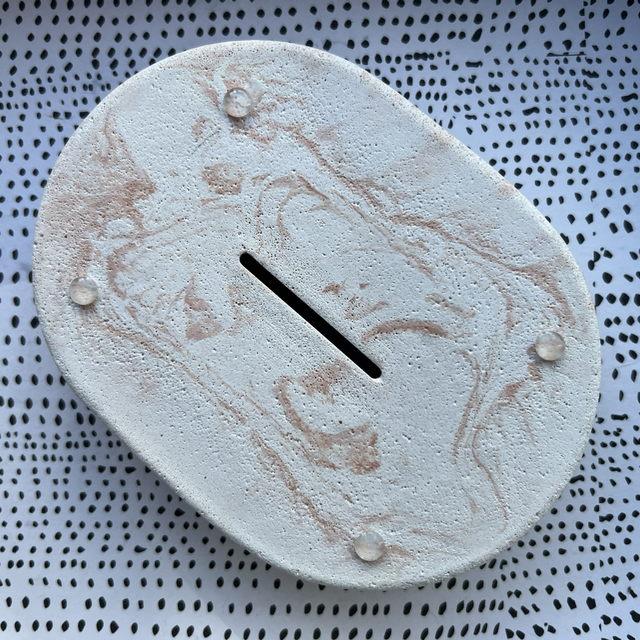 Oval soap dish in blush and white marbling. Beautiful stone finish and the perfect quirky accessory for your bathroom.